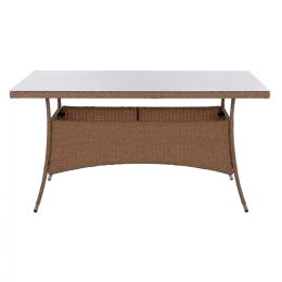 ΤΡΑΠΕΖΙ ΜΕΤΑΛΛΙΚΟ MILITARY RATTAN ΜΠΕΖ ΚΑΦΕ HM5141.32 120x70x75Υ εκ.