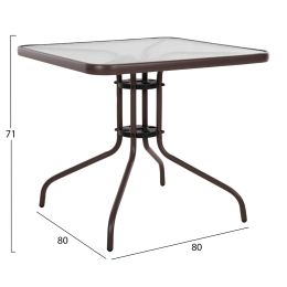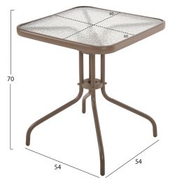 ΤΡΑΠΕΖΙ ΜΕΤΑΛΛΙΚΟ OFER ΟΡΘΟΓΩΝΙΟ ΚΑΦΕ ΜΕ ΓΥΑΛΙ ΚΑΦΕ 150X90Χ75Υεκ. HM5767.02