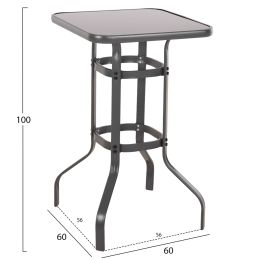 ΤΡΑΠΕΖΙ ΜΠΑΡ ΤΕΤΡΑΓΩΝΟ FIGGY HM6066.01 ΜΕΤΑΛΛΙΚΟ ΓΚΡΙ-ΓΥΑΛΙ ΑΣΦΑΛΕΙΑΣ 60x60x100Υεκ