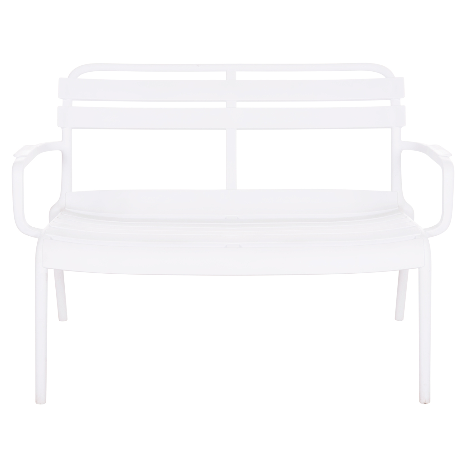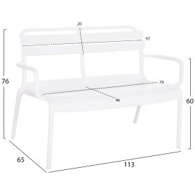 Το 2θέσιο παγκάκι εξωτερικού χώρου KORVER είναι εξολοκλήρου κατασκευασμένο από πολυπροπυλένιο σε ΛΕΥΚΟ χρώμα. Σχεδιαστικά, είναι λιτό με όμορφες καμπύλες, με πλάτη και μπράτσα, και μπορεί να χρησιμοποιηθεί με πολλούς τρόπους προσφέροντας μια πρακτική και ανθεκτική χρήση. Ιδανική πρόταση για χρήση σε εξωτερικούς χώρους, είτε επαγγελματικούς (χώροι δεξιώσεων, εταιρείες catering, κλπ.) είτε για το σπίτι.