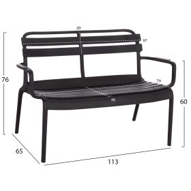Το 2θέσιο παγκάκι εξωτερικού χώρου KORVER είναι εξολοκλήρου κατασκευασμένο από πολυπροπυλένιο σε ΜΑΥΡΟ χρώμα. Σχεδιαστικά, είναι λιτό με όμορφες καμπύλες, με πλάτη και μπράτσα, και μπορεί να χρησιμοποιηθεί με πολλούς τρόπους προσφέροντας μια πρακτική και ανθεκτική χρήση. Ιδανική πρόταση για χρήση σε εξωτερικούς χώρους, είτε επαγγελματικούς (χώροι δεξιώσεων, εταιρείες catering, κλπ.) είτε για το σπίτι.