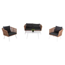 Σας παρουσιάζουμε το όμορφο σετ σαλονιού εξωτερικού χώρου FREJA σε συνδυασμό χρωμάτων που θα λατρέψετε, με 1 τραπεζάκι, 2 πολυθρόνες και 1 διθέσιο καναπέ. Ο σκελετός σε όλο το σετ είναι από αλουμίνιο ΛΕΥΚΟ, επενδυμένο με συνθετικό RATTAN σε ΜΠΕΖ χρώμα. Το design τους είναι πανέμορφο στην όψη ενώ η στιβαρότητά τους είναι εμφανής. Το ΛΕΥΚΟ τραπεζάκι είναι πρακτικότατο, ενώ οι πολυθρόνες είναι φαρδιές και αγκαλιάζουν το σώμα πράγμα που επιτείνει την άνεση που προσφέρουν, σε συνδυασμό με τα αναπαυτικά μαξιλάρια τόσο στο κάθισμα όσο και στην πλάτη. Ο διθέσιος καναπές σε παρόμοιο design είναι, όμως, το πιο εντυπωσιακό κομμάτι αυτού του σετ που τον καθιστά το σημείο αναφοράς. Τα μαξιλάρια σε όλο το σετ είναι επενδυμένα με πολυεστερικό ύφασμα σε ΑΝΘΡΑΚΙ χρώμα και διαθέτουν γέμισμα με μέτριας σκληρότητας αφρώδη υλικά για την μεγαλύτερη δυνατή άνεση, αλλά και φερμουάρ. Τι άλλο να ζητήσει κανείς για να αναβαθμίσει τον εξωτερικό χώρο της επιχείρησής του;