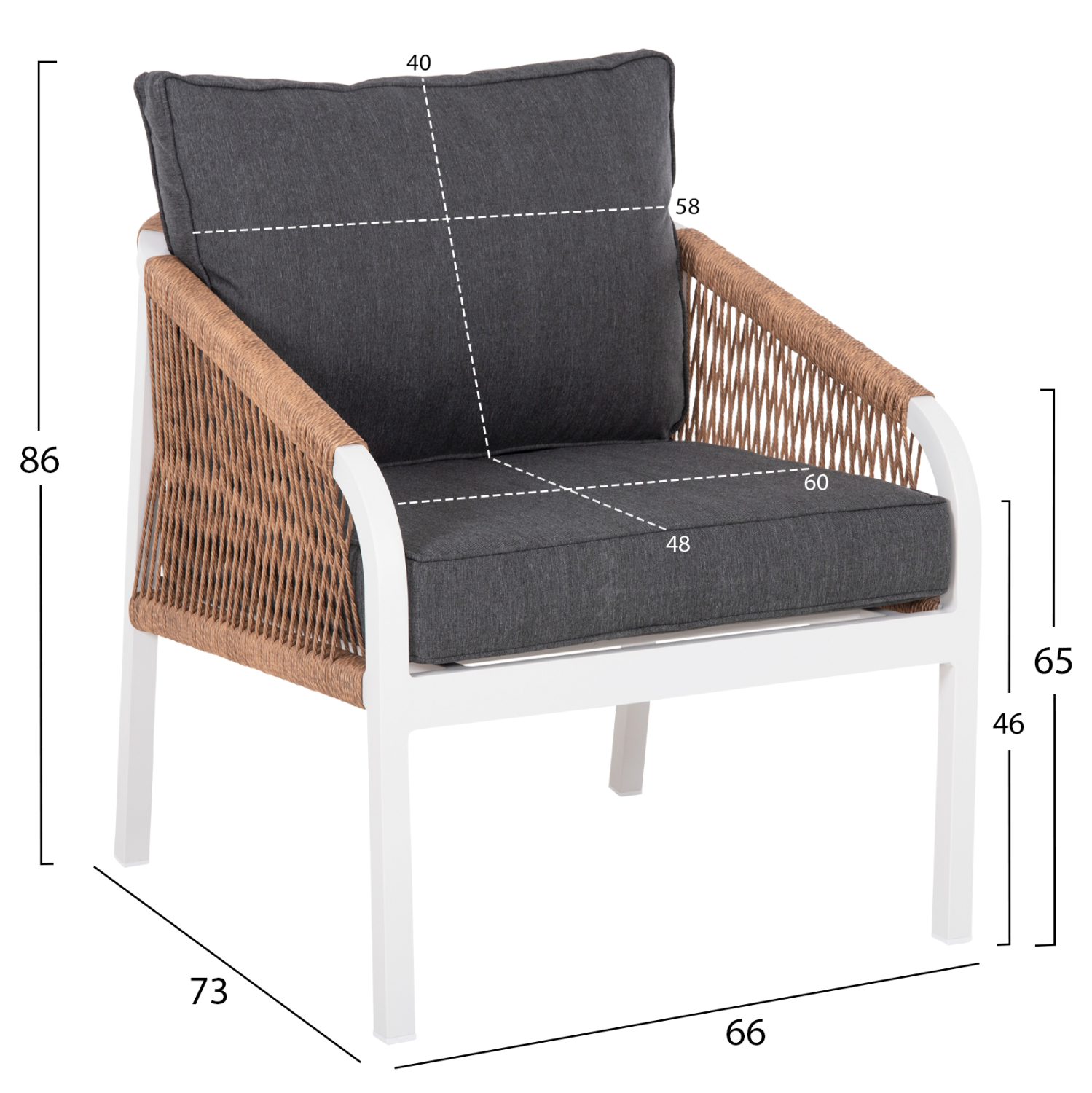 Διαστάσεις πολυθρόνας: 66x73x86Y εκ.--Ύψος καθίσματος: 46 εκ.---Ύψος μπράτσου: 65 εκ.