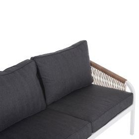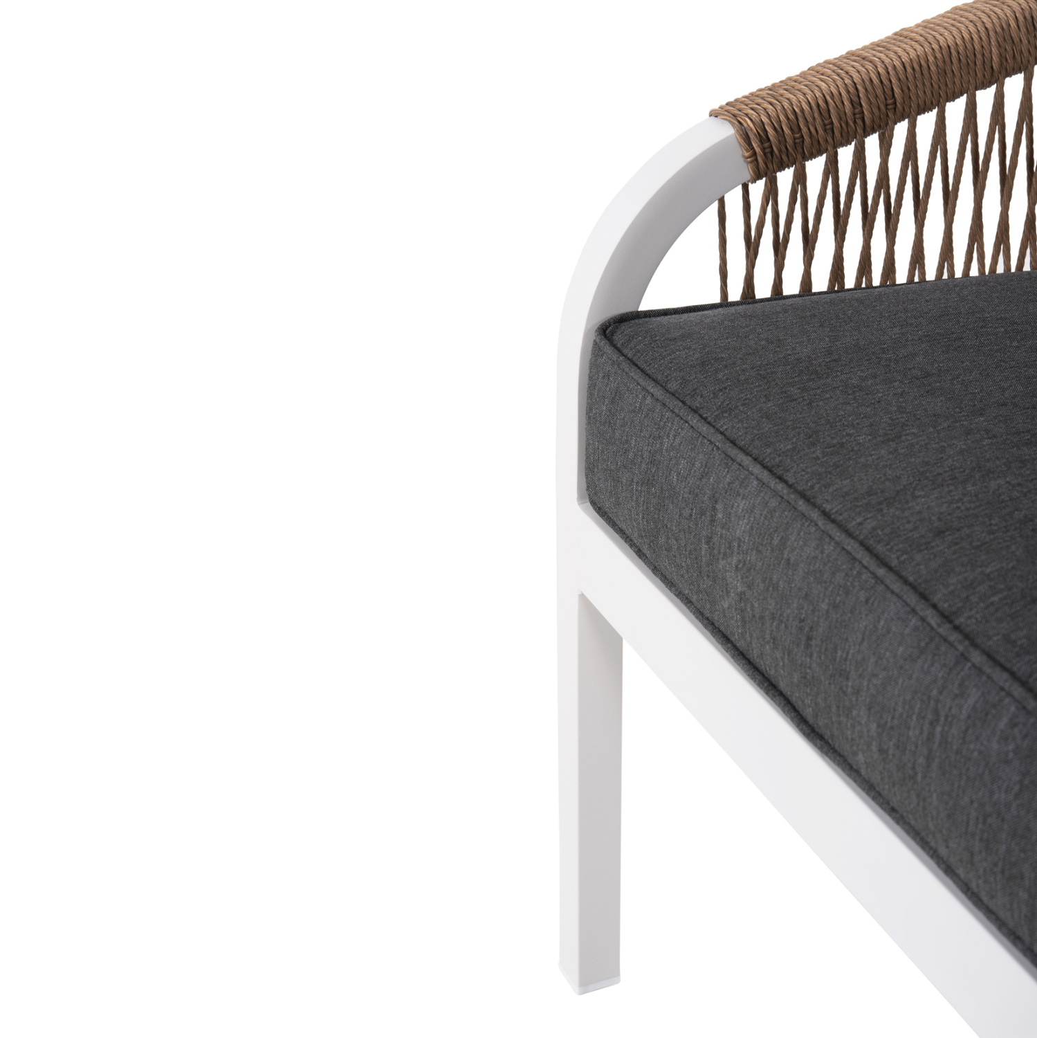 Σας παρουσιάζουμε το εντυπωσιακό και νέο σετ σαλονιού εξωτερικού χώρου MAERLY σε ΛΕΥΚΟ χρώμα, με τραπεζάκι, 2 πολυθρόνες και 1 τριθέσιο καναπέ. Ένα σετ που θα το λατρέψετε με την πρώτη ματιά. Ο σκελετός σε όλο το σετ είναι από αλουμίνιο επενδυμένο με ΜΠΕΖ συνθετικό σχοινί. Το design τους είναι πανέμορφο στην όψη ενώ η στιβαρότητά τους είναι εμφανής. Το κάθισμά στον καναπέ και τις πολυθρόνες είναι φαρδύ ενώ η πλάτη τους αγκαλιάζει το σώμα πράγμα που επιτείνει την άνεση που προσφέρουν, σε συνδυασμό με τα αναπαυτικά μαξιλάρια τόσο στο κάθισμα όσο και στην πλάτη. Ο τριθέσιος καναπές σε παρόμοιο design είναι, όμως, το πιο εντυπωσιακό κομμάτι αυτού του σετ με τις μεγάλες διαστάσεις του που τον καθιστούν το σημείο αναφοράς. Τα μαξιλάρια σε όλο το σετ είναι επενδυμένα με πολυεστερικό ύφασμα σε ΑΝΘΡΑΚΙ χρώμα και διαθέτουν γέμισμα με μέτριας σκληρότητας αφρώδη υλικά για την μεγαλύτερη δυνατή άνεση, αλλά και φερμουάρ. Τι άλλο να ζητήσει κανείς για να αναβαθμίσει τον εξωτερικό χώρο της επιχείρησής του;