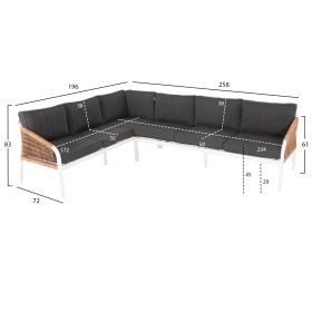 Σας παρουσιάζουμε το εντυπωσιακό και νέο γωνιακό σαλόνι εξωτερικού χώρου MAERLY σε ΛΕΥΚΟ χρώμα, με τραπεζάκι, και 2 καναπέδες. Ένα σετ που θα το λατρέψετε με την πρώτη ματιά. Ο σκελετός στους καναπέδες είναι από αλουμίνιο με ΜΠΕΖ συνθετικό σχοινί στα μπράτσα. Το τραπεζάκι έχει επιφάνεια από polywood σε χρώμα ΦΥΣΙΚΟΥ ξύλου. Τα μαξιλάρια σε όλο το σετ είναι επενδυμένα με πολυεστερικό ύφασμα σε ΑΝΘΡΑΚΙ χρώμα και διαθέτουν γέμισμα με μέτριας σκληρότητας αφρώδη υλικά για την μεγαλύτερη δυνατή άνεση, αλλά και φερμουάρ. Τι άλλο να ζητήσει κανείς για να αναβαθμίσει τον εξωτερικό χώρο του;