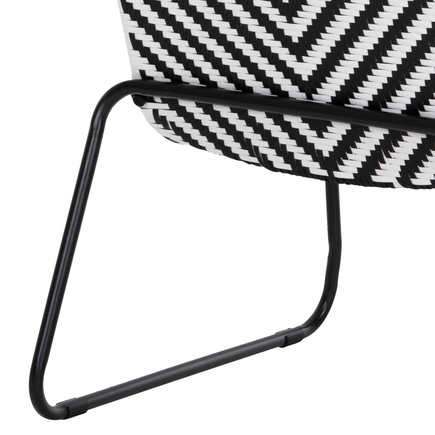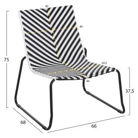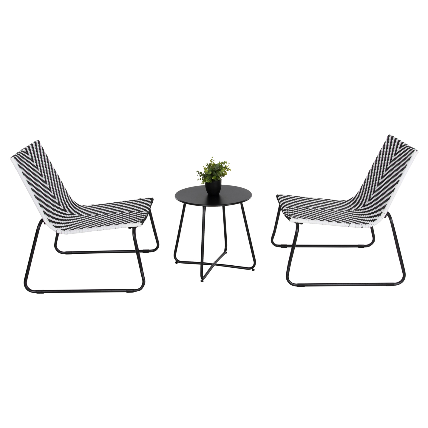 Αυτό το σετ εξωτερικού χώρου αποτελείται από 2 αναπαυτικές καρέκλες PONY και ένα χαμηλό ΜΑΥΡΟ μεταλλικό στρογγυλό τραπεζάκι. Οι καρέκλες έχουν επένδυση με πλέξη wicker από συνθετικό rattan σε ΜΑΥΡΟ-ΛΕΥΚΟ χρώμα και χαρακτηριστική κλίση προς τα πίσω, καθιστώντας τις μια εξαιρετική επιλογή για κάθε εξωτερικό χώρο. Ο μεταλλικός σκελετός σε ΜΑΥΡΟ χρώμα είναι στιβαρός και συνδυάζεται άψογα με το μικρό τραπεζάκι με την χιαστί βάση, ενώ μπορείτε να τις στοιβάσετε σε κάθε περίπτωση.