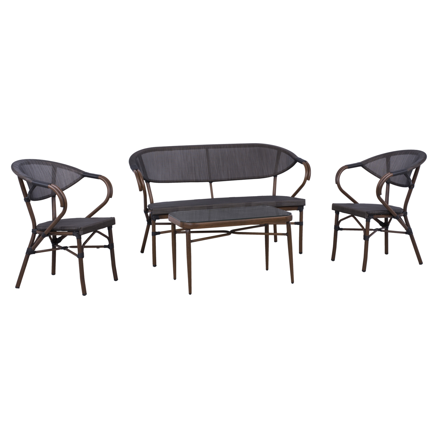 Ολοκληρωμένο σετ σαλόνι 4 τμχ. από σκελετό αλουμινίου bamboo look επενδυμένο με textilene σε γκρι απόχρωση.