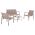 Το σετ σαλόνι εξωτερικού χώρου JULIETTE αποτελείται από έναν 2-θέσιο καναπέ, 2 αναπαυτικές πολυθρόνες, και ένα στρογγυλό τραπεζάκι. Ο καναπές και οι πολυθρόνες διαθέτουν σκελετό αλουμινίου, ενώ το κάθισμα και οι πλάτη τους είναι από ποιοτικό ύφασμα textilene με μια λεπτή γέμιση με αφρώδες υλικό. Το τραπεζάκι πέρα από τον σκελετό αλουμινίου, διαθέτει επιφάνεια από ανθεκτικό γυαλί ασφαλείας (tempered glass). Όλο το σετ είναι σε ΚΑΠΟΥΤΣΙΝΟ χρώμα, ενώ η λεπτομέρεια με το polywood στα μπράτσα προσδίδει στο σετ μια αίσθηση πολυτέλειας.