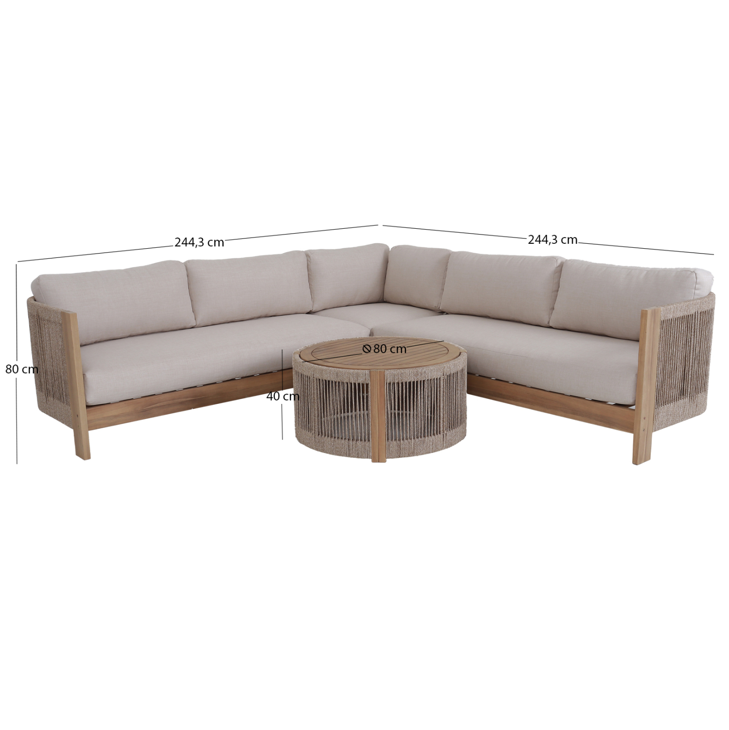 244,3x244,3x80Υ εκ. (μαζί με το μαξιλάρι στο ύψος)