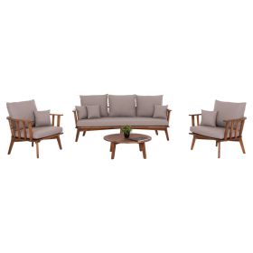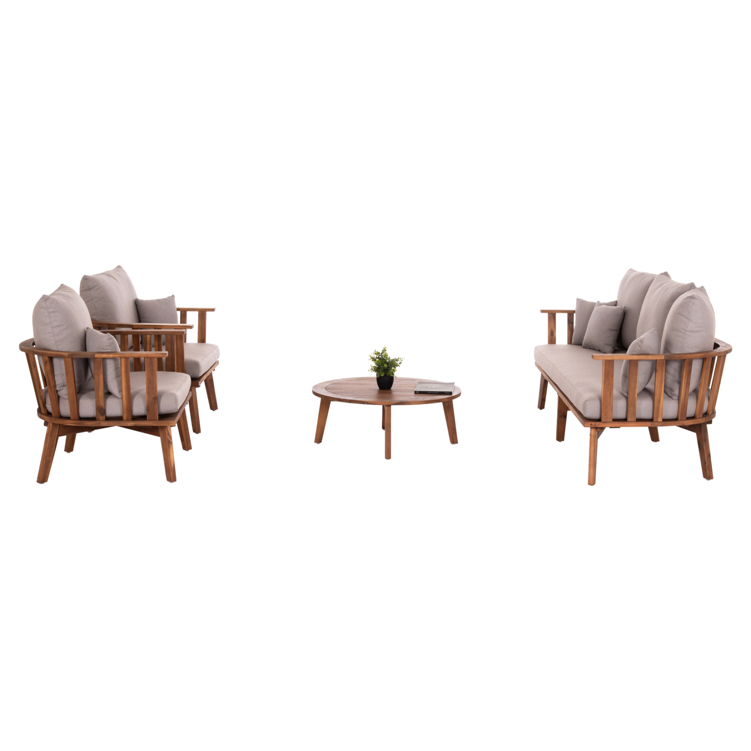 Σας παρουσιάζουμε το όμορφο σετ εξωτερικού χώρου HARRA σε ΦΥΣΙΚΟ χρώμα, με στρογγυλό τραπεζάκι, 2 πολυθρόνες και 1 τριθέσιο καναπέ. Όλο το σετ είναι κατασκευασμένο από ξύλο ΑΚΑΚΙΑΣ. Οι πολυθρόνες και ο καναπές έχουν φαρδύ και κοντό κάθισμα ενώ τα μαξιλάρια σε όλο το σετ είναι επενδυμένα με ποιοτικό P.E. ύφασμα σε ΓΚΡΙ χρώμα και διαθέτουν γέμισμα με μέτριας σκληρότητας αφρώδη υλικά για την μεγαλύτερη δυνατή άνεση. Τι άλλο να ζητήσει κανείς για να απολαύσει τον ήλιο;