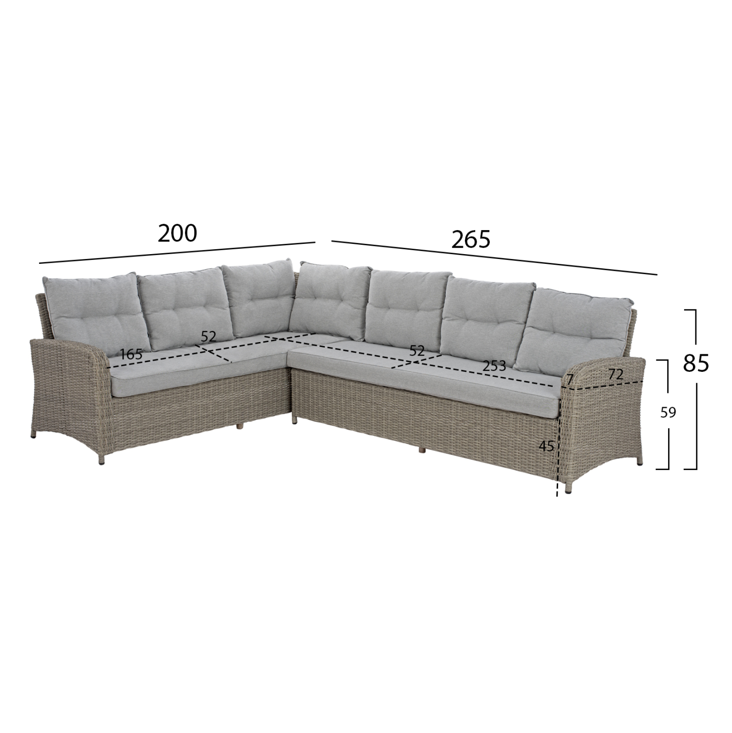 Διαστάσεις καναπέ: 265x200x85 εκ.