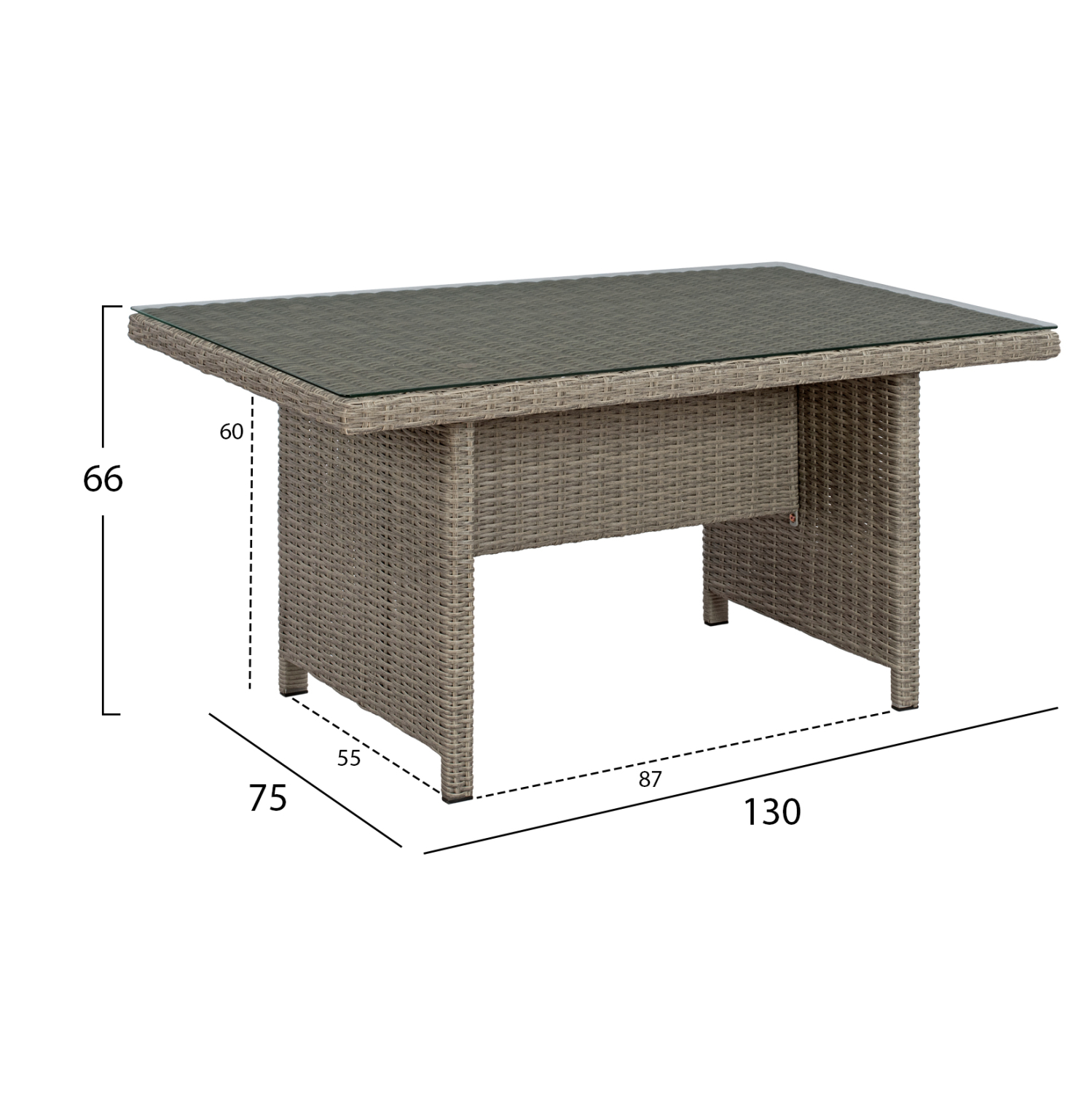 Διαστάσεις τραπεζιού: 130x75x66 εκ.
