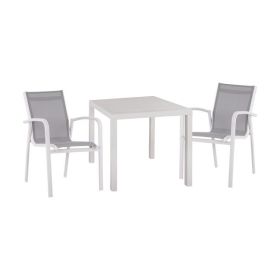 αλουμινίου σε λευκό χρώμα & επενδυμένες με textilene σε γκρι απόχρωση.