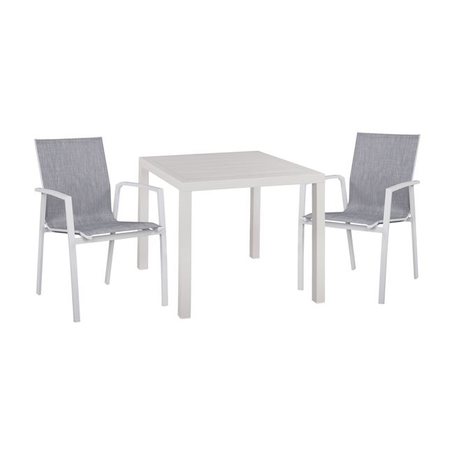 αλουμινίου σε λευκό χρώμα & επενδυμένες με textilene σε γκρι απόχρωση.