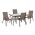 Τέσσερις πολυθρόνες εξωτερικού χώρου από μεταλλικό σκελετό σε καφέ χρώμα με textilene 2x1 μεγάλης αντοχής σε ήλιο και βροχή.