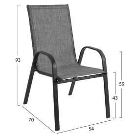 4 πολυθρόνες εξωτερικού χώρου από μεταλλικό σκελετό σε γκρι χρώμα με textilene 2x1 μεγάλης αντοχής σε ήλιο και βροχή.