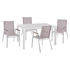 Ένα τραπέζι κατασκευασμένο από σκελετό αλουμινίου σε λευκή απόχρωση.