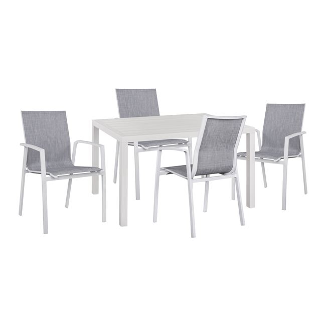 αλουμινίου σε λευκό χρώμα & επενδυμένες με textilene σε γκρι απόχρωση.