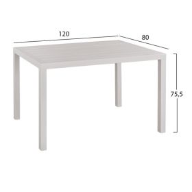 Ένα τραπέζι τραπεζαρίας κατασκευασμένο από αλουμίνιο σε σε λευκή απόχρωση,