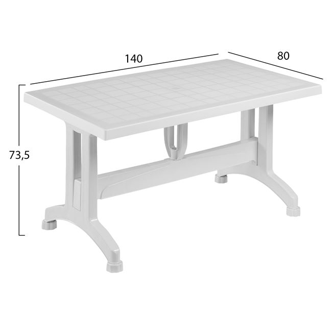 Ένα τραπέζι πολυπροπυλενίου εξωτερικού χώρου σε λευκή απόχρωση.
