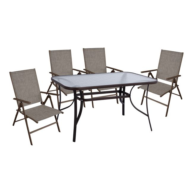 σκελετό, επενδυμένες με ύφασμα textilene σε καφέ απόχρωση.