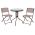Σετ εξωτερικού χώρου με στρογγυλό τραπέζι με ΚΑΦΕ μεταλλικό σκελετό και γυάλινη θολή ΕΝΙΣΧΥΜΕΝΗ επιφάνεια και 2 μεταλλικές πτυσσόμενες καρέκλες με textilene, σε ΚΑΦΕ χρώμα.
