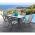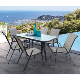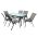 Έξι πολυθρόνες εξωτερικού χώρου από μεταλλικό σκελετό σε γκρι χρώμα με textilene 2x1 μεγάλης αντοχής σε ήλιο και βροχή.