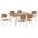 Ένα τραπέζι τραπεζαρίας με επιφάνεια Polywood σε φυσική απόχρωση και σκελετό αλουμινίου σε λευκό χρώμα.