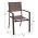Δύο μοντέρνες πολυθρόνες εξωτερικού χώρου, κατασκευασμένες από μέταλλο σε καφέ απόχρωση με επενδυμένο textilene σε καφέ χρώμα.