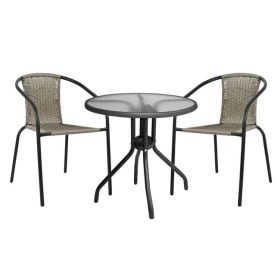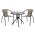 Η πλάτη και το κάθισμα είναι ντυμένα με πλεκτό συνθετικό υλικό wicker σε ανοιχτό γκρι χρώμα.