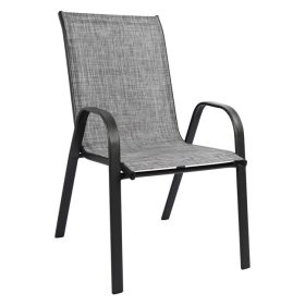 Δύο πολυθρόνες εξωτερικού χώρου από μεταλλικό σκελετό σε γκρι χρώμα με textilene 2x1 μεγάλης αντοχής σε ήλιο και βροχή.