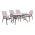 Τέσσερις πολυθρόνες εξωτερικού χώρου από μεταλλικό σκελετό σε καφέ χρώμα με textilene 2x1 μεγάλης αντοχής σε ήλιο και βροχή, με αδιάβροχο μαξιλάρι σε μπεζ απόχρωση.
