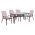 Τέσσερις πολυθρόνες εξωτερικού χώρου από μεταλλικό σκελετό σε καφέ χρώμα με textilene 2x1 μεγάλης αντοχής σε ήλιο και βροχή, με αδιάβροχο μαξιλάρι σε μπεζ απόχρωση.