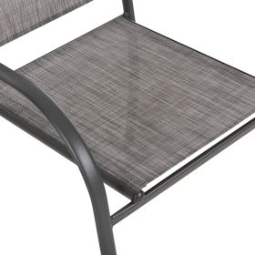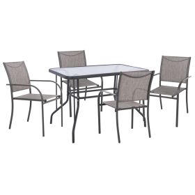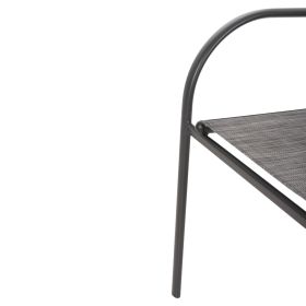 Αυτό το Σετ τραπεζαρίας εξωτερικού χώρου διαθέτει τραπέζι με ΓΚΡΙ μεταλλικό σκελετό και γυάλινη θολή ΕΝΙΣΧΥΜΕΝΗ επιφάνεια, και 4 ΓΚΡΙ μεταλλικές στοιβαζόμενες πολυθρόνες με κάθισμα & πλάτη από ύφασμα textilene (2x1) σε ΓΚΡΙ χρώμα.