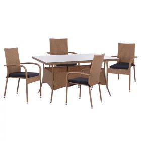 Σετ τραπεζαρίας εξωτερικού χώρου, σε απόχρωση καφέ μπεζ με μαξιλάρια.