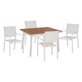 ΗΜ11836—Σετ εξωτερικού χώρου με τραπέζι με ΛΕΥΚΟ αλουμινένιο σκελετό και επιφάνεια από polywood και 4 μεταλλικές πολυθρόνες με textilene, σε ΛΕΥΚΟ χρώμα.