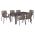 Έξι μοντέρνες πολυθρόνες εξωτερικού χώρου κατασκευασμένες από σκελετό αλουμινίου σε ανθρακί απόχρωση, επενδυμένες με πλεκτό pe πλατύ κορδόνι στην πλάτη σε καπουτσίνο απόχρωση.