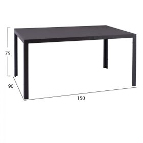 Ένα τραπέζι τραπεζαρίας εξωτερικού χώρου σε γκρι απόχρωση με γυαλί στην επιφάνειά του.
