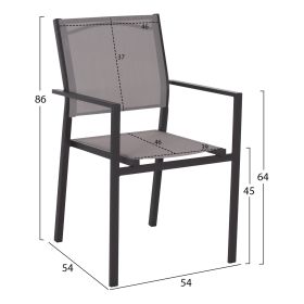 ΗΜ11789—Σετ εξωτερικού χώρου με τραπέζι με ΓΚΡΙ μεταλλικό σκελετό και γυάλινη θολή ΕΝΙΣΧΥΜΕΝΗ επιφάνεια και 6 μεταλλικές πολυθρόνες με textilene σε ΓΚΡΙ χρώμα.