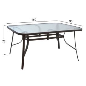 Ένα τραπέζι μεταλλικό εξωτερικού χώρου σε καφέ απόχρωση, με ενσωματωμένο τζάμι ασφαλείας (secure).