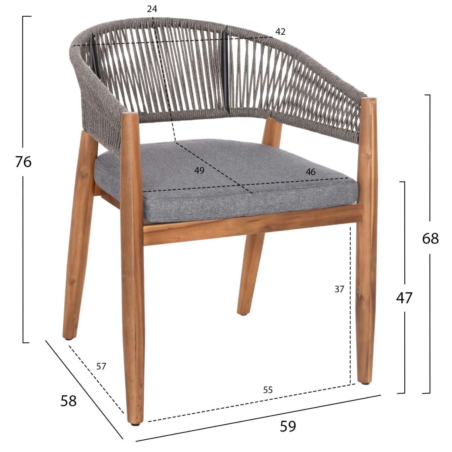 Το σετ είναι κατασκευασμένο από φυσικό μασίφ ξύλο ΑΚΑΚΙΑΣ. Οι καρέκλες έχουν nylon σχοινί στην πλάτη.