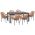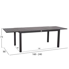 Αυτό το σετ τραπεζαρίας εξωτερικού χώρου αποτελείται από ένα ΣΚΟΥΡΟ ΓΚΡΙ επεκτεινόμενο τραπέζι αλουμινίου και 6 ΣΚΟΥΡΕΣ ΓΚΡΙ πολυθρόνες αλουμινίου με ΜΠΕΖ επένδυση από συνθετικό Twisted Rattan (σαν σχοινί) και σκούρο γκρι μαξιλάρι καθίσματος.