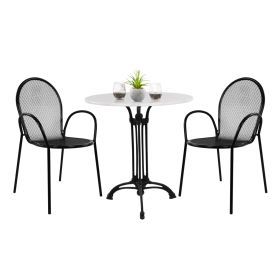 ΗΜ11881—Σετ εξωτερικού χώρου με στρογγυλό 3-νυχο τραπέζι με ΜΑΥΡΟ μαντεμένιο σκελετό και ΛΕΥΚΗ μαρμάρινη επιφάνεια και 2 ΜΑΥΡΕΣ μεταλλικές πολυθρόνες με διάτρητο στυλ.