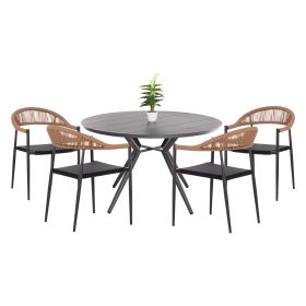 Αυτό είναι ένα σετ τραπεζαρίας εξωτερικού χώρου με ΣΚΟΥΡΟ ΓΚΡΙ αλουμινένιο στρογγυλό τραπέζι και 4 πολυθρόνες αλουμινίου σε ΣΚΟΥΡΟ ΓΚΡΙ χρώμα με κάθισμα textilene και πλάτη από πολυεστερικό RATTAN. Οι πολυθρόνες είναι στοιβαζόμενες.