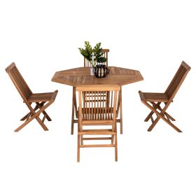 Το σετ τραπεζαρίας KENDALL για εξωτερικούς χώρους θα σας συναρπάσει. Αποτελείται από ένα αναδιπλούμενο πολύγωνο τραπέζι κατασκευασμένο από ποιοτικό ξύλο στο ΦΥΣΙΚΟ του χρώμα με ικανοποιητικές διαστάσεις για τουλάχιστον 4 άτομα, και 4 αναδιπλούμενες καρέκλες της ίδιας σειράς. Ιδανικό τόσο για το σπίτι, όσο και για επαγγελματικούς χώρους!