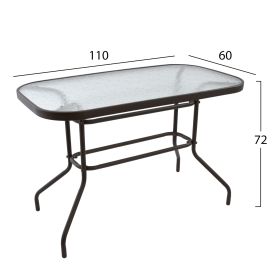 Ένα τραπέζι μεταλλικό εξωτερικού χώρου σε χρώμα καφέ, με ενσωματωμένο τζάμι ασφαλείας (secure).