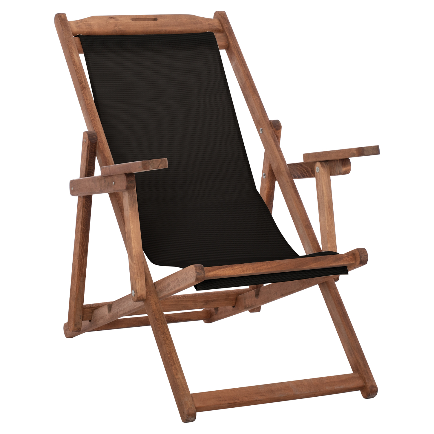 Σεζλόνγκ Λήμνος, με μπράτσα σε καρυδί απόχρωση και μαύρο pvc πλέξης 2x1.