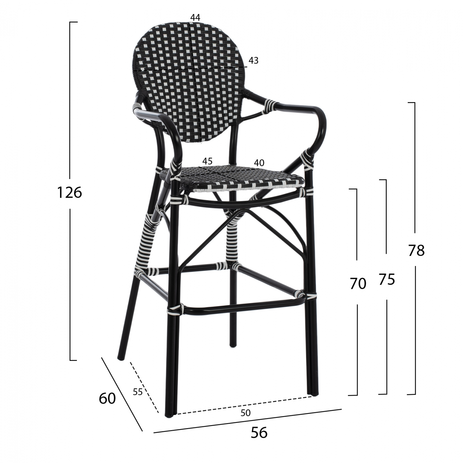 Σκαμπώ αλουμινίου Bamboo Look επενδυμένο με wicker σε πλάτη και κάθισμα,