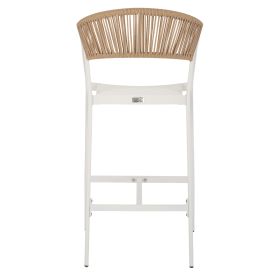 Η πλάτη του σκαμπό είναι επενδυμένη με πολυεστερικό RATTAN. Στα περισσότερα έπιπλα κήπου και γενικά σε έπιπλα για εξωτερικούς χώρους χρησιμοποιείται συνθετικό υλικό από PVC, δηλαδή τεχνητές ίνες υψηλής ποιότητας. Αυτό δίνει στην κατασκευή εξαιρετική αντοχή και ανθεκτικότητα σε ακραίες συνθήκες ζέστης ή κρύου.