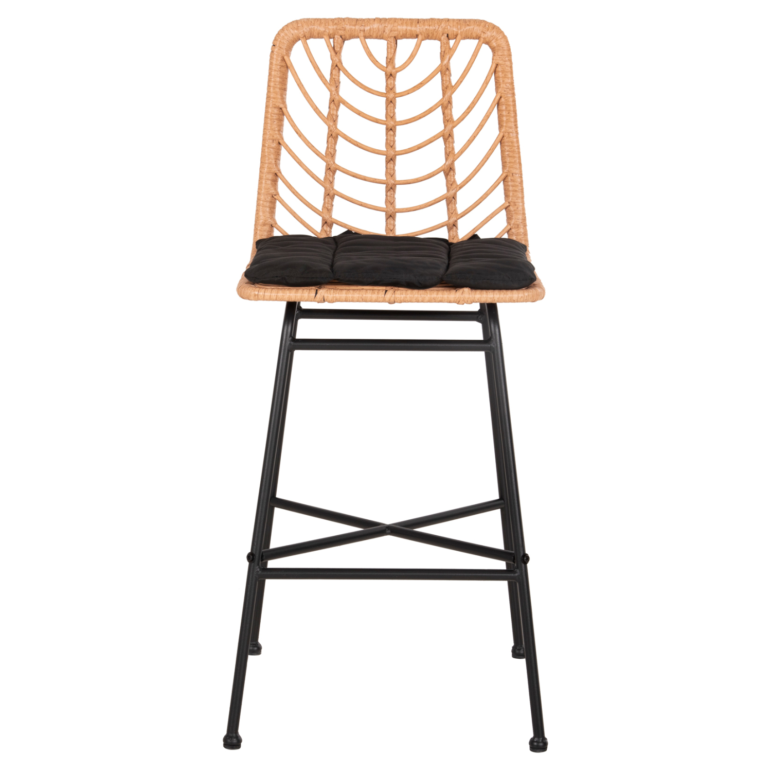 Το σκαμπό μπαρ εξωτερικού χώρου μεσαίου ύψους GERALD είναι όμορφο και στιβαρό. Η κατασκευή του με την πλέξη wicker του συνθ. Rattan σε ΜΠΕΖ χρώμα, θα αναβαθμίσει αισθητικά τον χώρο που θα το τοποθετήσετε και θα τραβήξει τα βλέμματα. Διαθέτει πλάτη αλλά και μαύρο μαξιλάρι καθίσματος που δένεται στην καρέκλα με σχοινάκια συμπληρώνοντάς την ιδανικά. Ο σκελετός είναι μεταλλικός με χιαστί ενώσεις στα πόδια σε ΜΑΥΡΟ χρώμα.